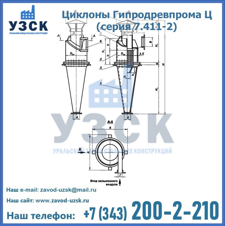 Циклоны Гипродревпрома Ц (серия 7.411-2) высокого качества можно купить в компании «УЗСК» в Великом Новгороде. Наши специалисты предоставят всю необходимую информацию информацию и помогут с выбором модели циклона. Подробные технические характеристики, конструкцию, параметры, ассортимент и стоимость продукции можно также найти на сайте УЗСК.