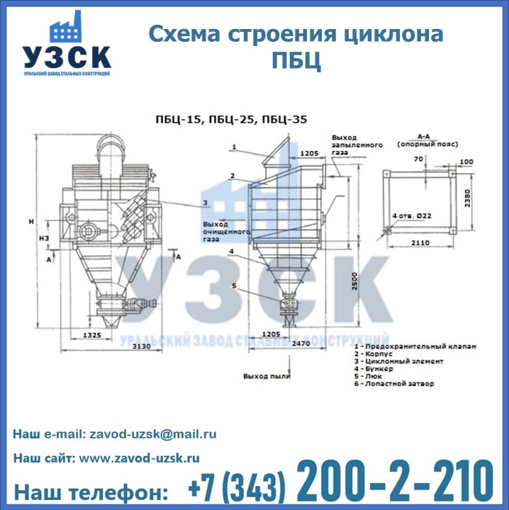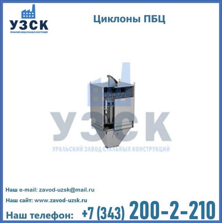 Завод «УЗСК» в Великом Новгороде предлагает приобрести циклоны ПБЦ и прочие устройства, полностью укомплектованные и готовые к эксплуатации. Мы гарантируем соответствие оборудования всем требованиям ГОСТ и ТУ, износостойкость и высокую производительность предлагаемого оборудования. Уральский Завод Стальных Конструкций изготавливает и продает надежное, эффективное и производительное оборудование, имеющее длительную гарантию и большой эксплуатационный ресурс. Если требуется изготовить циклон нестандартных размеров, то такой вариант выполнения заказа тоже предусмотрен, так как предприятие имеет собственные производственные площади и надежных поставщиков. На все поставляемое или производимое оборудование имеются чертежи и прочая техническая документация. Заказать и купить циклоны или прочее оборудование высокого качества и по доступной цене можно через наш сайт или по указанному в разделе «Контакты» телефону.