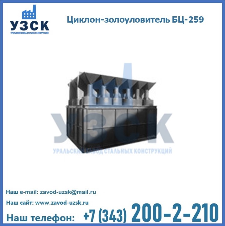 Если вы планируете купить то или иное оборудование, например, циклоны-золоуловители БЦ-259, то рекомендуем заказать данный товар на сайте УЗСК. Мы производим и реализуем продукцию высокого качества по приемлемой цене. Эксперты Уральского Завода Стальных Конструкций в Великом Новгороде проконсультируют вас по всем вопросам, помогут сделать выбор и оформить заказ без лишних временных затрат. Мы гарантируем соответствие нашей продукции всем требованиям ГОСТ и ТУ, а также износостойкость и высокую производительность предлагаемого оборудования. Если требуется изготовить циклон нестандартных размеров, то такой вариант выполнения заказа тоже предусмотрен, так как предприятие имеет собственные производственные площади и надежных поставщиков. На все поставляемое или производимое оборудование имеются чертежи и прочая техническая документация. Заказать и купить циклоны или прочее оборудование высокого качества и по доступной цене можно через наш сайт или по указанному в разделе «Контакты» телефону.