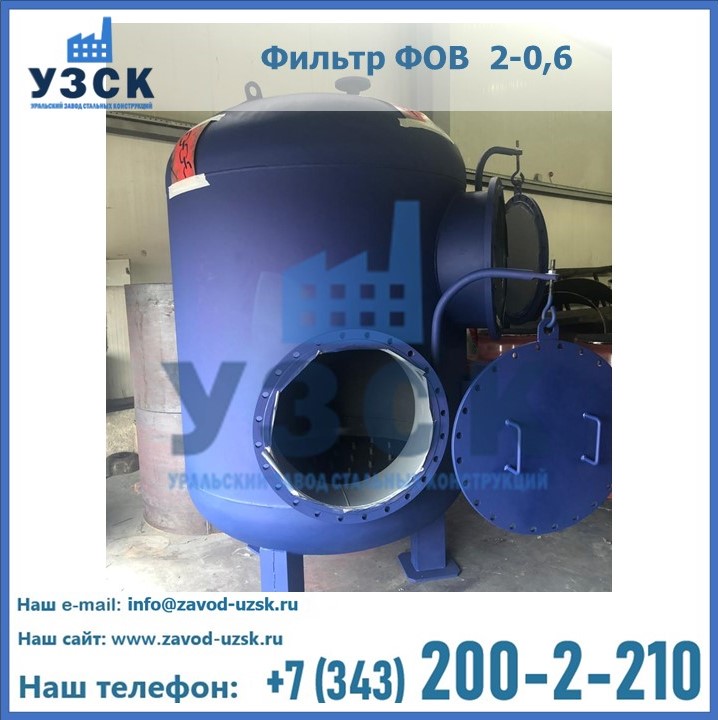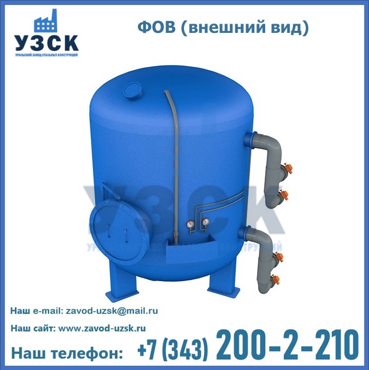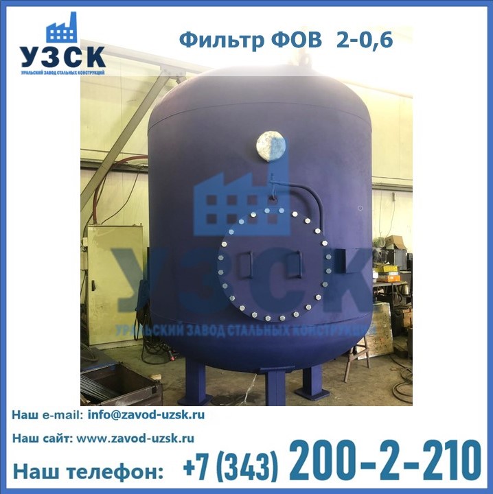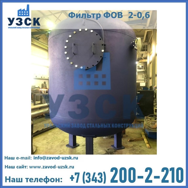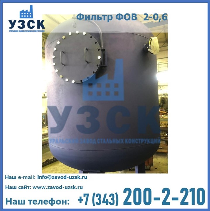 Удаление взвешенных веществ различного уровня дисперсности из рабочих жидкостей эффективно проводит фильтр осветлительный типа ФОВ (скорый или механический) — вертикально-цилиндрической формы установка, разработанная для систем водоподготовки различного класса. Оборудование представляет собой однокамерный агрегат для очистки воды рекомендованный для применения на станциях очистки стоков, в коммунальных котельных, на ТЭЦ, в промышленных отопительных системах и пр. Заказать производство ФОВ фильтров предлагает наш Уральский завод стальных конструкций в Великом Новгороде. У нас можно купить фильтрационное оборудование различного класса и типа, в том числе фильтры ФОВ из нержавеющей стали.