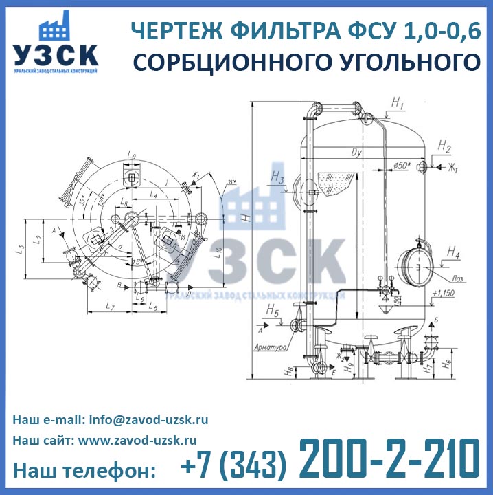 Наш завод (Уральский завод стальных конструкций) является производителем угольных фильтров, сам осуществляет изготовление и реализацию выпускаемой продукции. Приобретая фильтры ФСУ-1.0-0.6 в Великом Новгороде от производителя, Вы приобретаете оборудование без наценок всевозможных посредников, а также значительно экономите свое время. Фильтры ФСУ1.0-0.6 завода УЗСК – это гарантия качества, кратчайшие сроки изготовления и цена, которая Вам понравится.