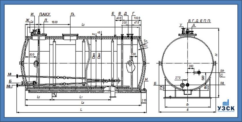 Емкости для хранения газового конденсата это сосуды, работающие под давлением. Горизонтальный или вертикальный герметичный бак со сферическими днищами, имеющий патрубки для подвода и отбора может располагаться на поверхности и в грунте.