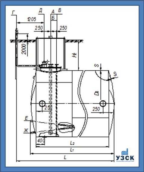 Технические характеристики резервуаров горизонтальных двустенных - РГД, РГСД