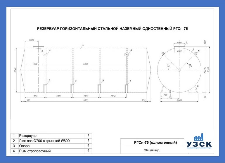 РГСн-75: горизонтальный резервуар одностенный наземного расположения;