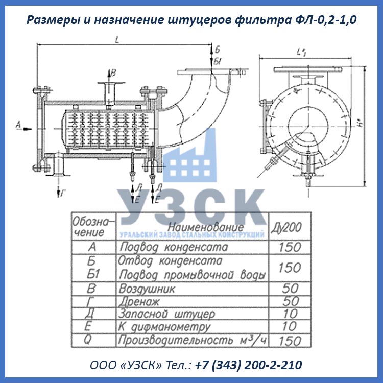 Основные характеристики фильтров ФЛ Ду 200 мм